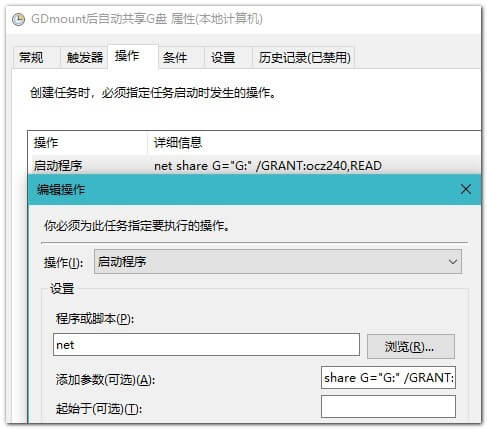 - 注意:不能直接共享盘符G:根目录,否则只能读,不能写。共享G:\我的云端硬盘则没有问题。