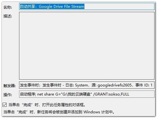 概述:本教程实现Google Drive File Stream挂载盘符后,自动对其作共享操作。(因为win重启后Google Drive File Stream的共享会失效)