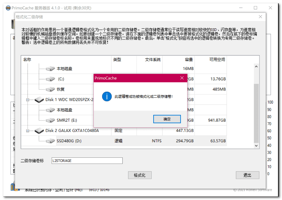 - PrimoCache在试用期到期前如果没有转正,那么过期后即便重装PrimoCache然后操作二级缓存,就会报错”格式化二级存储卷失败!”。