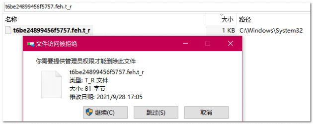 - 使用Everything定位出上面找到的文件t6be24899456f5757.feh.t_r,删除即可: