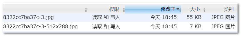 3、检查媒体文件夹,查看尾部带缩略图尺寸信息的文章,如下是512x288: