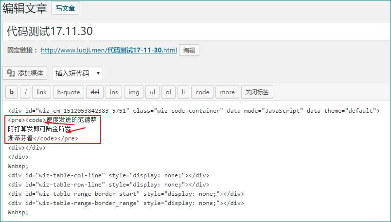 4、Wiz代码框使用的是<pre><code>组合标签: